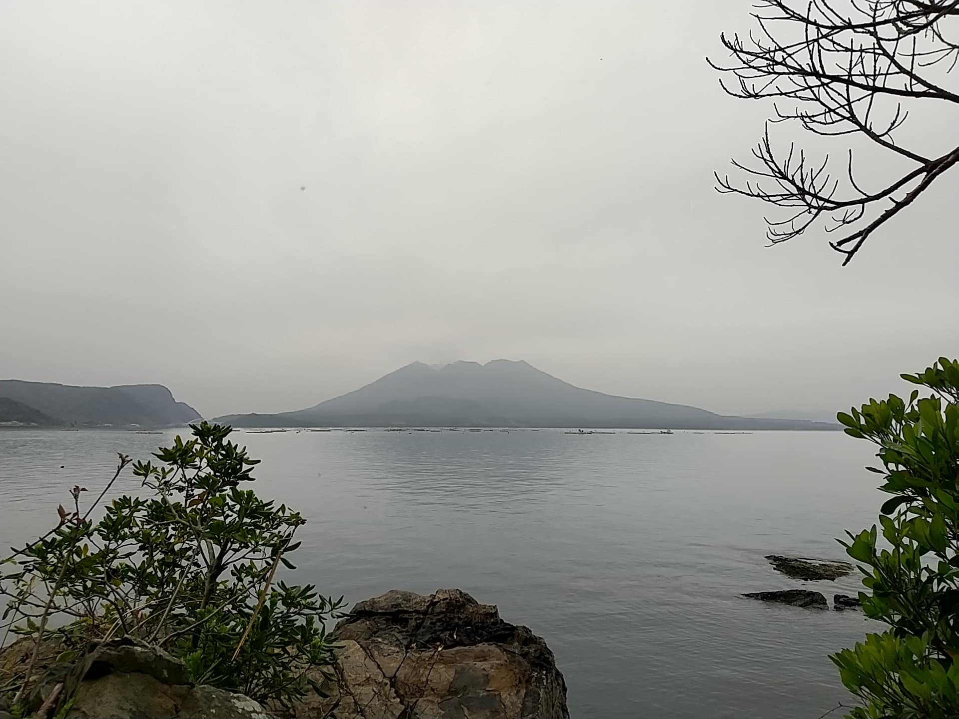 雨はやんできましたが、開聞岳はうっすらとしか見えませんね…。